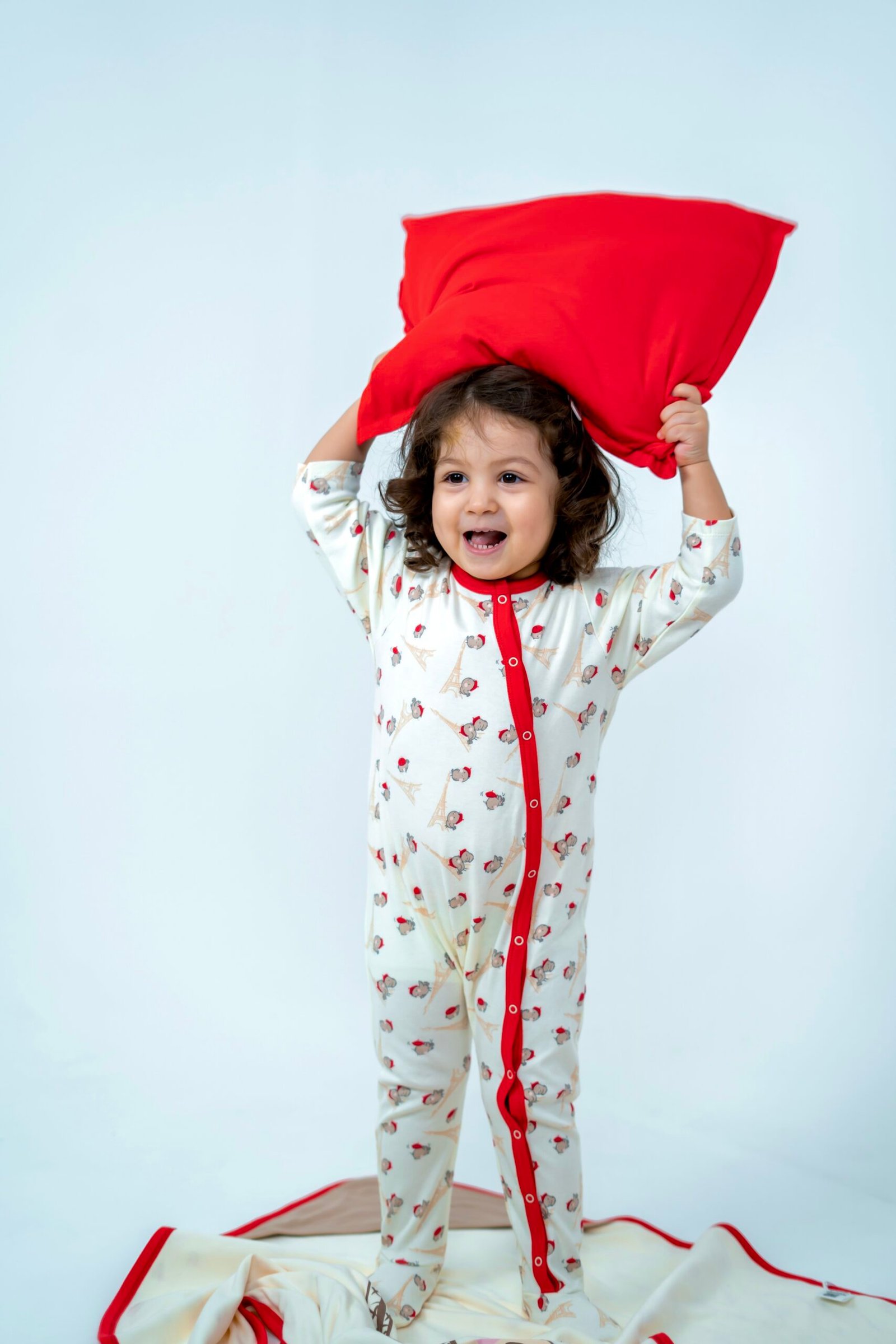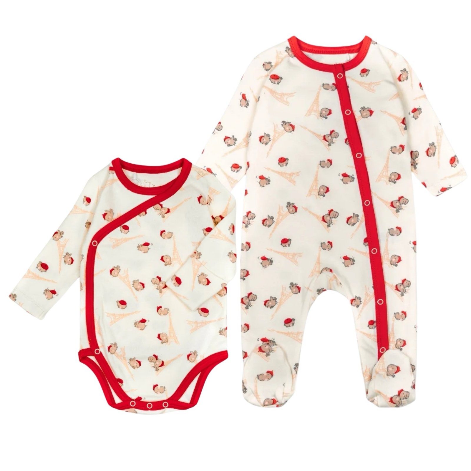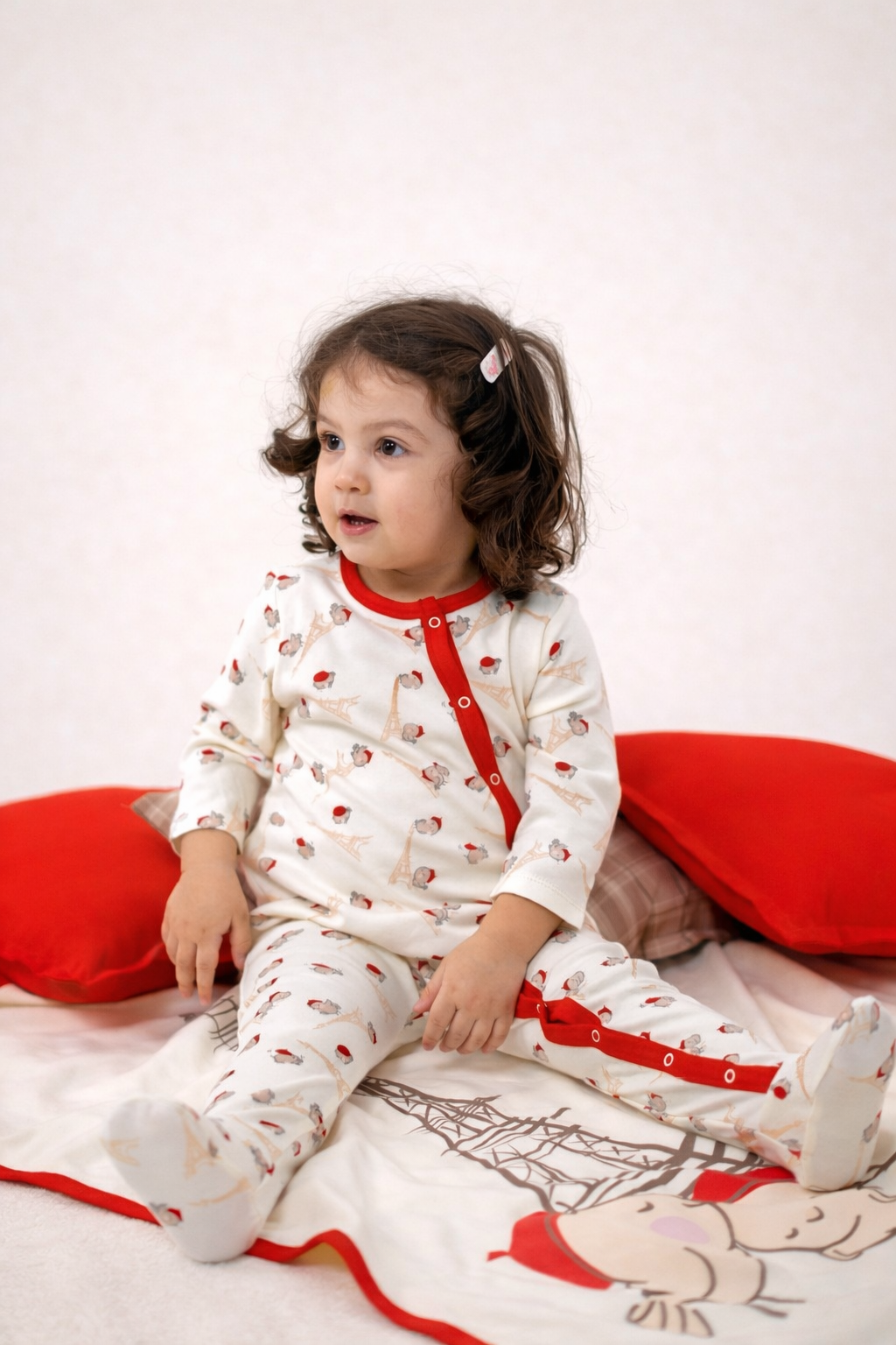 DivaKids „Paris“ 2 dalių kūdikių komplektas – žaismingas ir patogus drabužėlių derinys mažyliui. Komplektą sudaro smėlinukas su reguliuojamomis spaudėmis ir patogus šliaužtinukas. Reguliuojamos smėlinuko spaudės leidžia drabužėliui augti kartu su vaiku, todėl komplektas tarnaus ilgiau. Kreminės spalvos audinį papildo ryškios raudonos detalės, Eifelio bokšto piešiniai ir žaismingi šuniukai, suteikiantys komplektui išskirtinį paryžietišką charakterį. Minkšta ir kvėpuojanti medvilnė yra švelni jautriai kūdikio odelei ir užtikrina komfortą visai dienai.