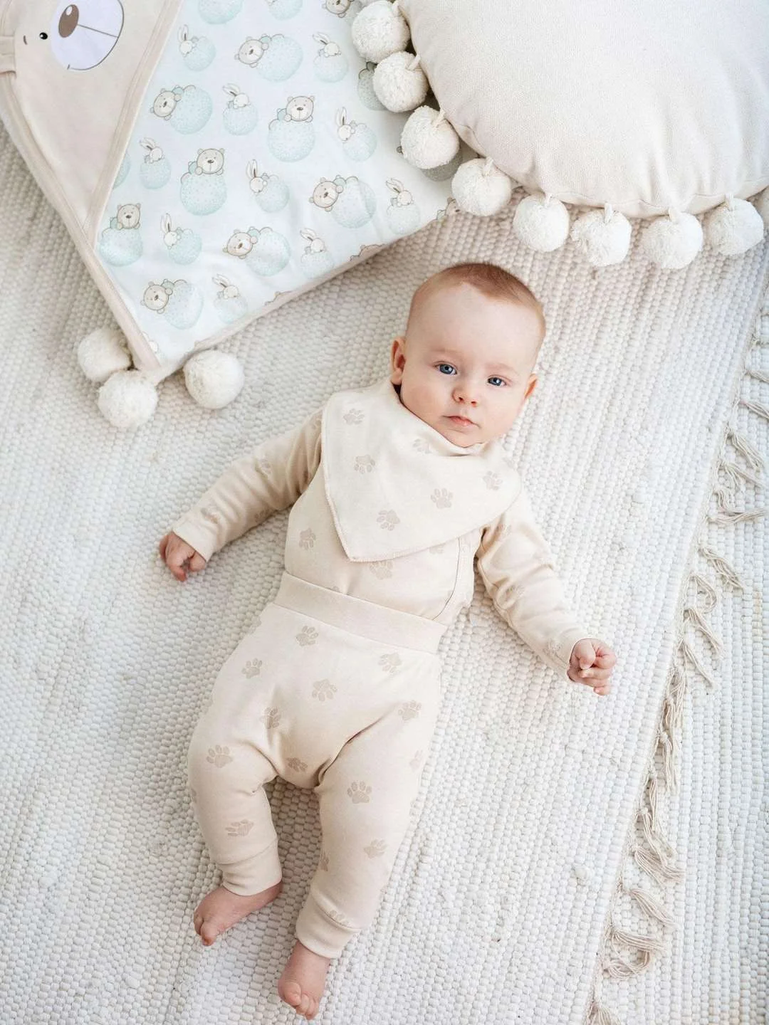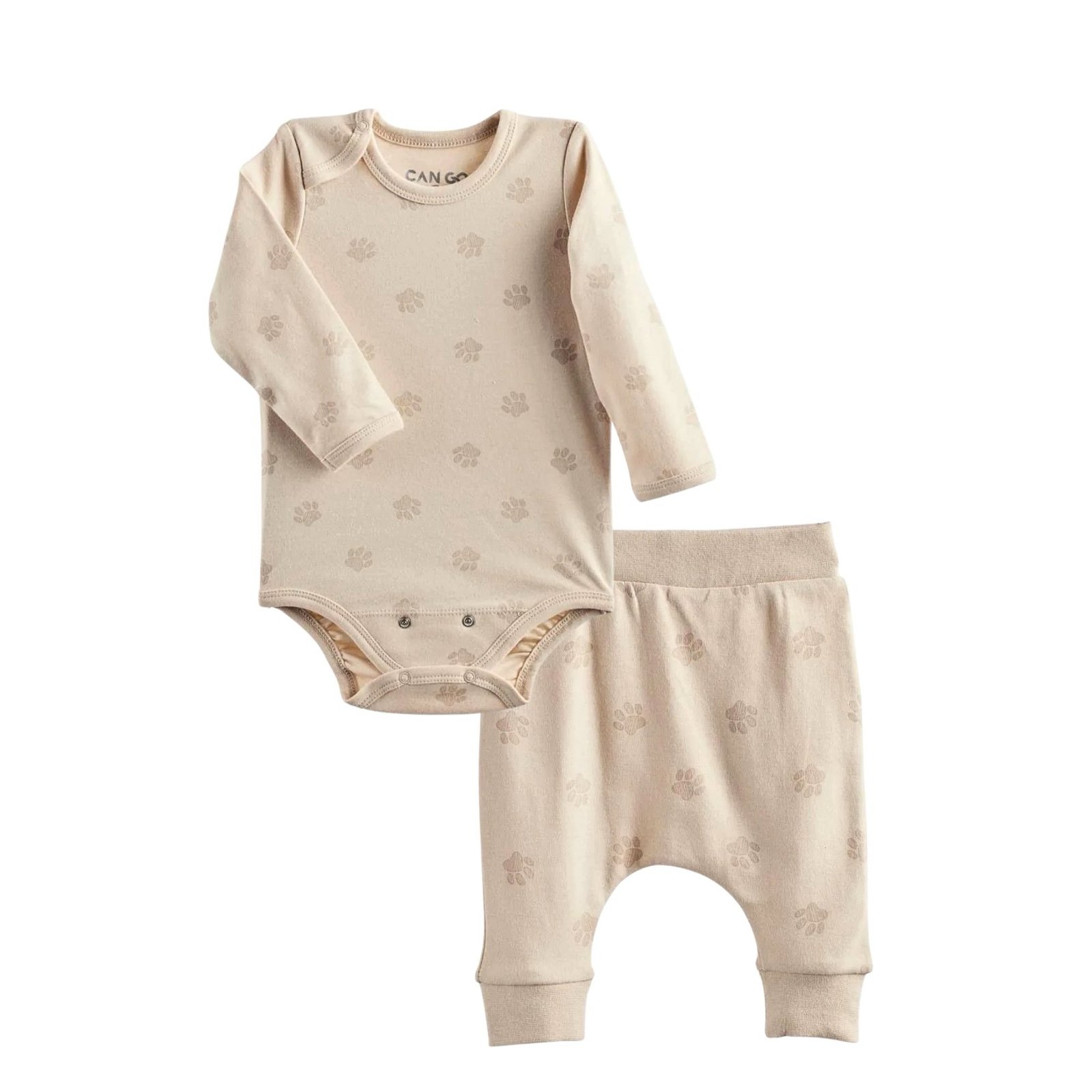 CAN GO kūdikių komplektas „Bear & Bunny“ – jaukus ir patogus drabužėlių rinkinys mažylio kasdienai. Neutralios smėlio spalvos komplektas su mielomis pėdučių aplikacijomis tinka tiek berniukui, tiek mergaitei. Minkšta medvilnė yra švelni kūdikio odelei ir leidžia odai kvėpuoti, todėl mažylis jausis patogiai visą dieną. Smėlinukas turi reguliuojamas spaudes, todėl rūbelį galima pritaikyti augančiam mažyliui ir nešioti ilgiau. Patogios kelnytės nevaržo judesių ir suteikia maksimalų komfortą kasdieniam dėvėjimui.