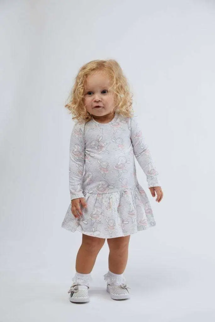 Pilkos spalvos CAN GO suknelė iš „Balerina“ kolekcijos – patogi ir minkšta suknelė mažosioms.
