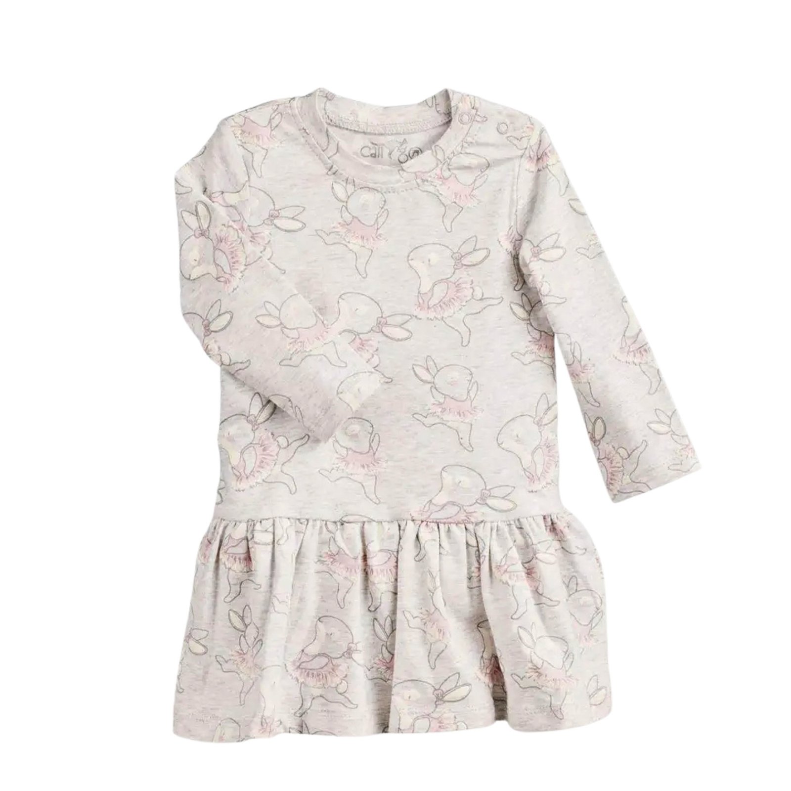 Suknelę puošia mielos kiškučio aplikacijos, suteikiančios žaismingumo. Medvilnės ir elastano audinys yra švelnus, patogus ir nevaržo judesių. Ties petuku esančios spaudės leidžia lengvai aprengti mažylę, todėl suknelė patogi tiek kasdienai, tiek progoms ar vizitams į svečius.